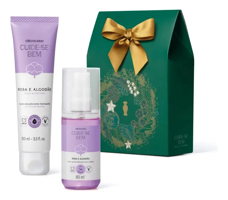 Uma opção mais simples, perfeita para dar no natal quem você ama sem gastar muito. O Kit Cuide-se Bem Rosa e Algodão leva mais conforto e bem-estar para o dia a dia. Oferece uma hidratação deliciosa com a loção corporal e uma fragrância delicada na pele com o body splash, ambos embalados em um papel de presente especial. O melhor presente natalino!
